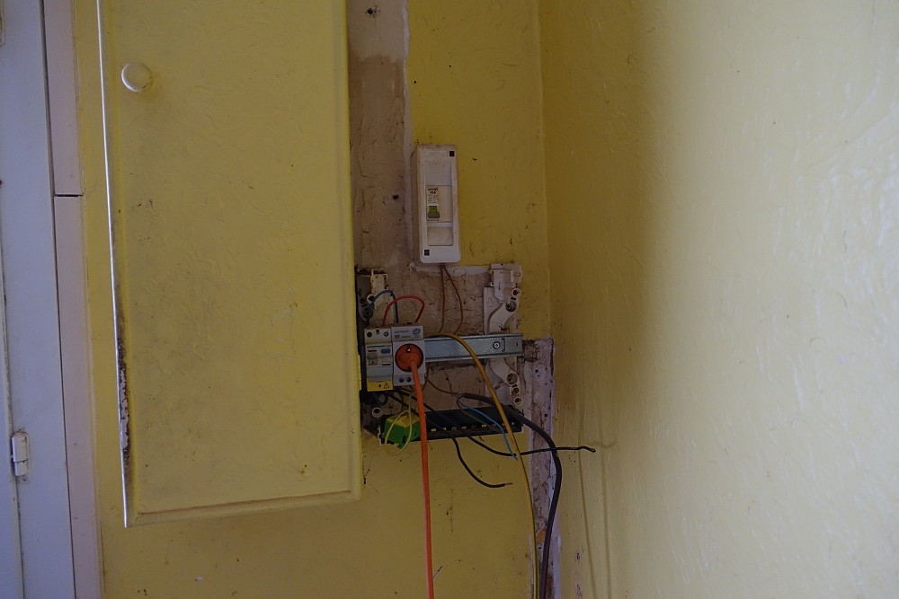 Ce qui reste du tableau électrique, cependant toujours opérationnel pour faire tourner les machines.