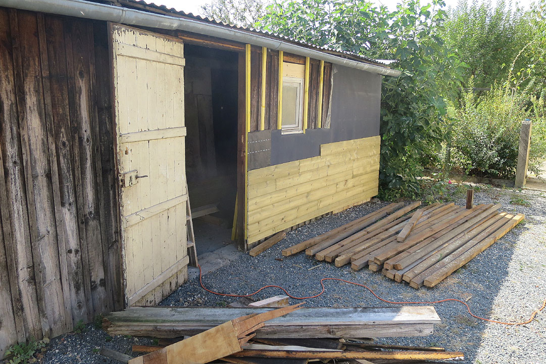 après avoir mis en place la petite fenêtre récupérée dans la maisonnette...